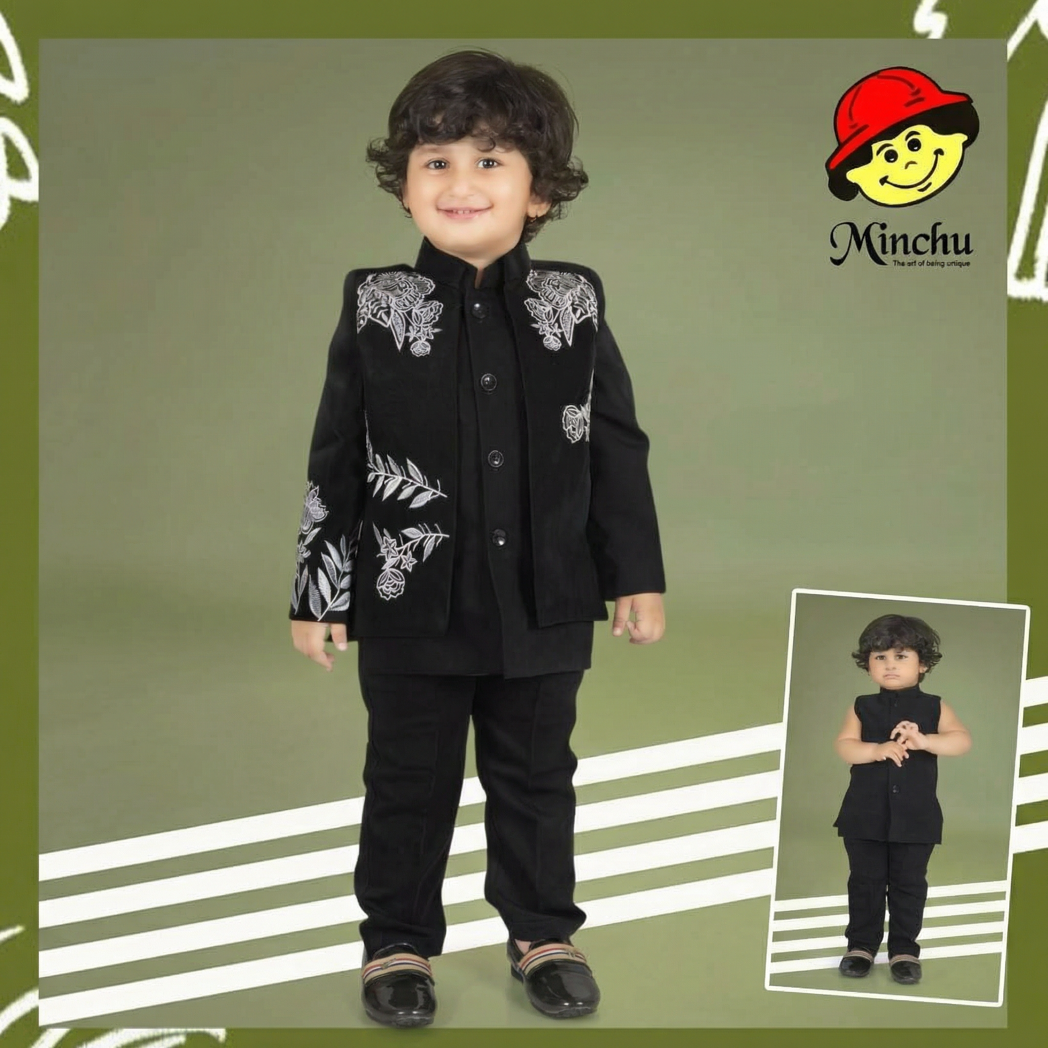 Be the first to review “Minchu Boys Black Ethnic Suit – Designer Festive & Wedding Wear for Kids” Cancel reply