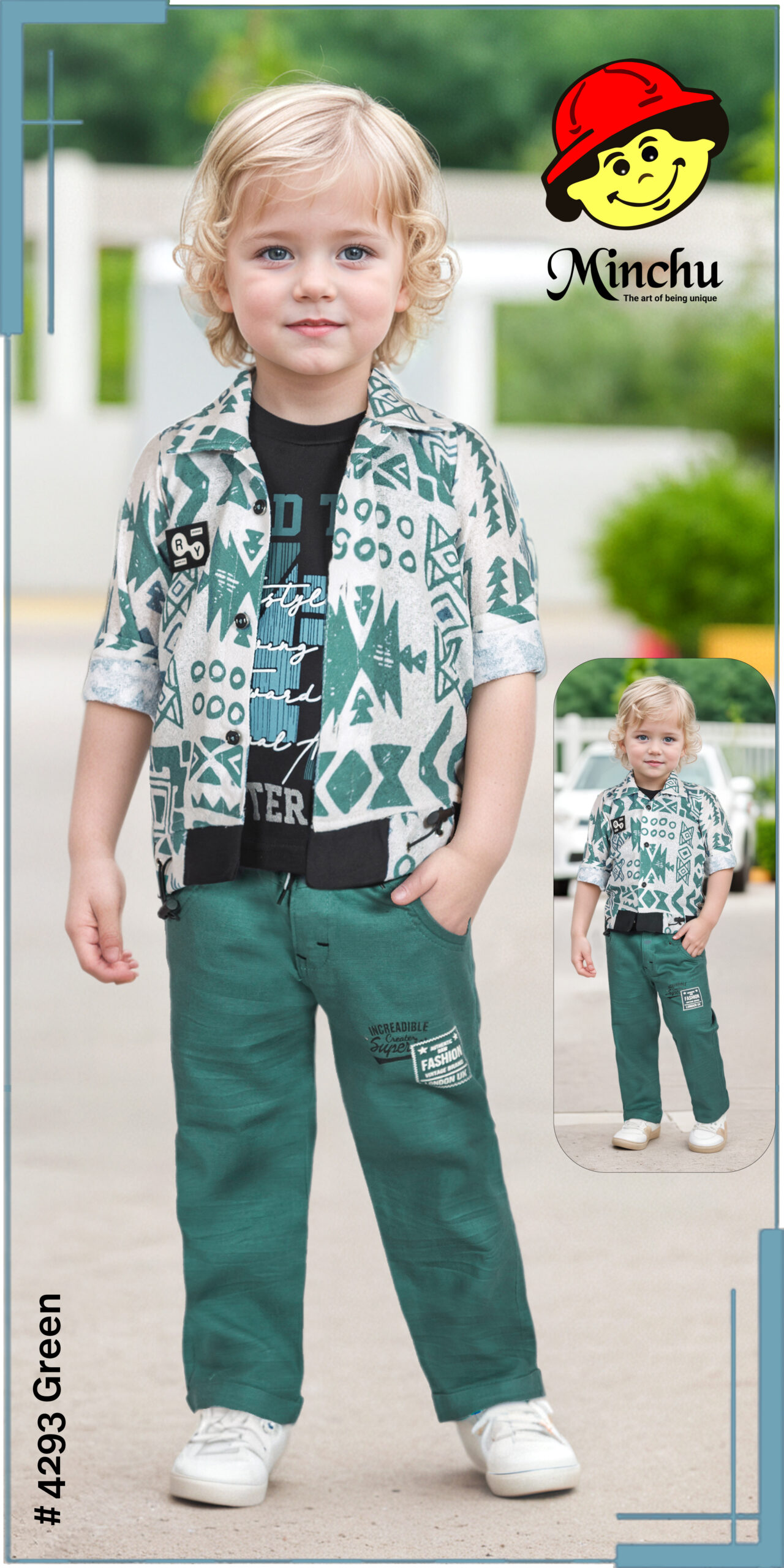 Trendy green co-ord set for boys featuring a printed shirt layered over a stylish T-shirt with comfortable matching pants. Soft, breathable fabric ensures all-day comfort—perfect for outings, travel, playtime, and casual wear.